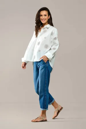 Ivy Beau straight regular waist gestreepte casual broek ecru