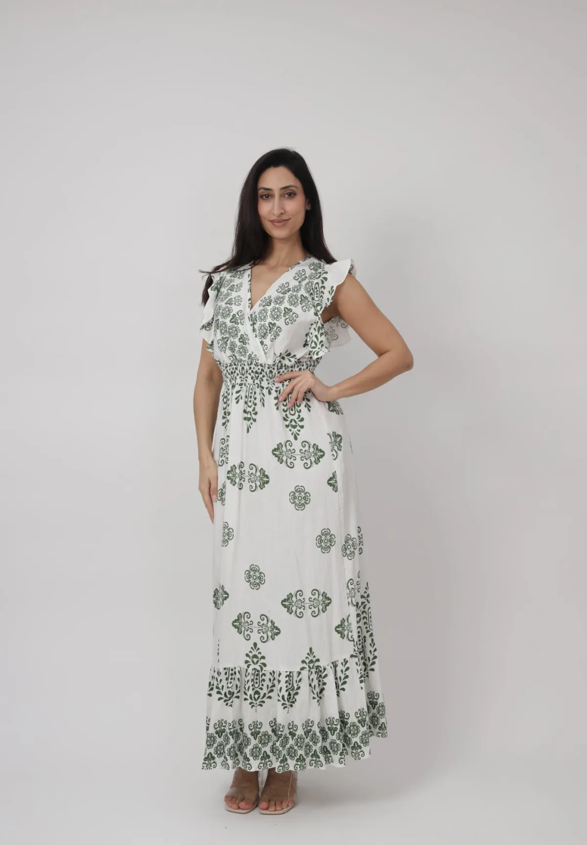 Elara Jurk olijfgroen / wit