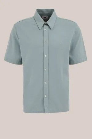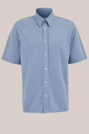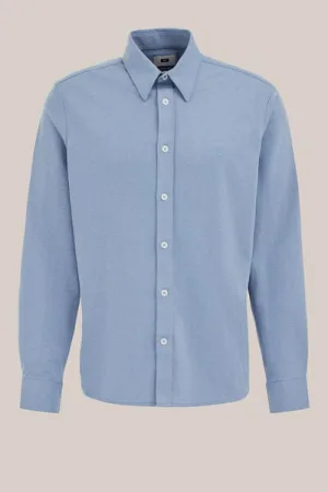 WE Fashion – Heren slim fit overhemd van piquéjersey – Regular fit – IJsblauw – Katoen –