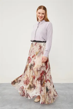 Levidor Lilac Marmer Print Chiffon Rok