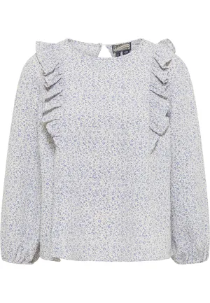 Dreimaster Blouse shirt Dames Blauw wol wit