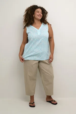 Mouwloos shirt Loose fit Blue/Green Abstract Flower