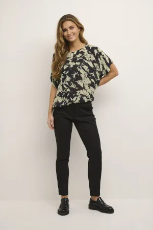 Blouse met korte mouwen Relaxed fit Sand/Black Flower