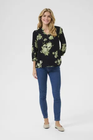 Blouse met lange mouwen Relaxed fit GraphicFlower Black/AgaveGreen floral