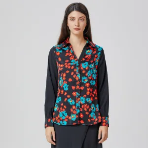 Overhemd met bloemenprint van twee materialen