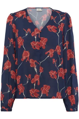 Blouse met lange mouwen Regular fit Midnight / Red Flowers floral