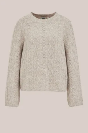 WE Fashion – Dames gebreide trui met structuur – Regular fit – Greige –