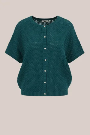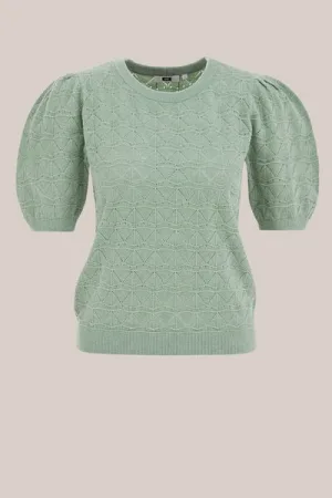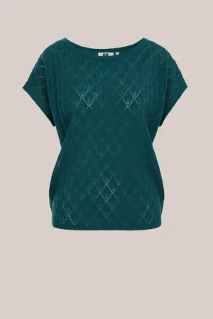 WE Fashion – Dames vest met open structuur – Regular fit – Zeegroen – Biologisch katoen –