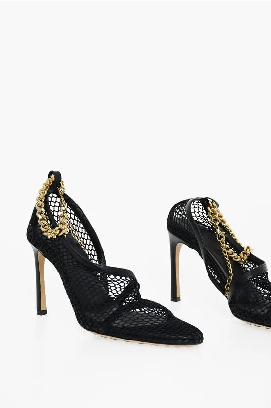 Mesh sandalen met goudkleurige kettingsluiting in Nero, Oro