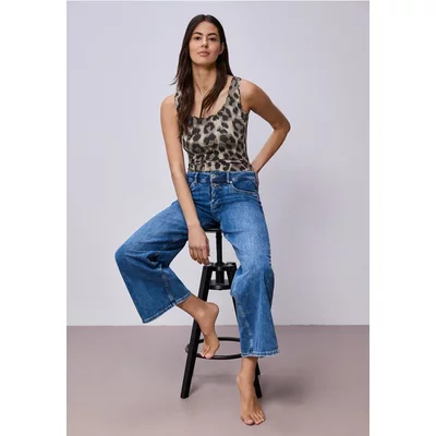 Street One Dames Basic top met ronde hals in leopatroon in Beige