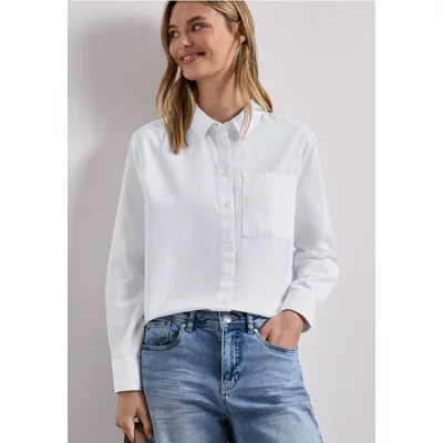 Street One Dames Shirt met ronde hals en decoratief detail in Wit