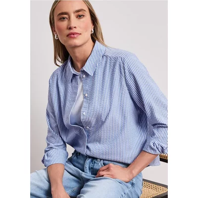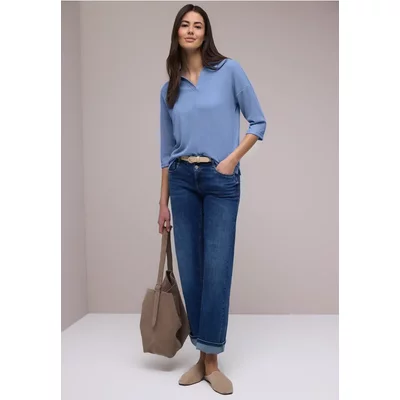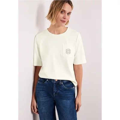 Street One Dames Shirt met ronde hals en decoratief detail in Wit