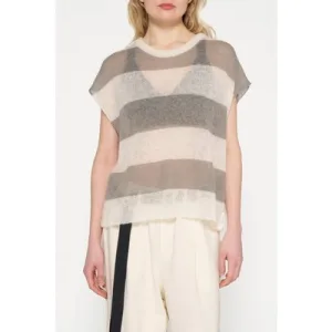10DAYS Sleeveless Sweater Knit Stripes Light Safari