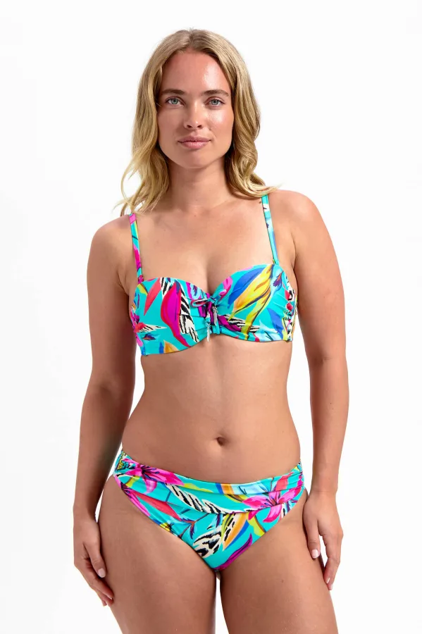Cyell voorgevormde strapless bandeau bikinitop turquoise/roze