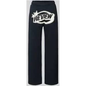 Review Wide leg sweatpants met labeldetail