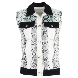 Sandro Paris vest met slangenprint in witte katoenen denim