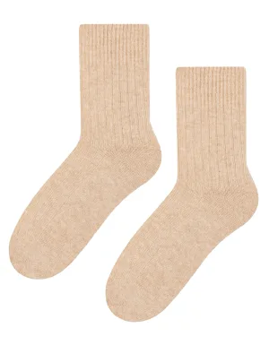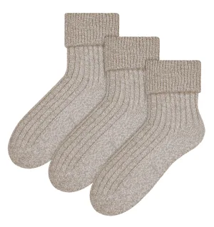 Steven – 3 Paar Dames Wol Bed Sokken | Luxe Lichtgewicht Warme Lounge Sokken – Beige