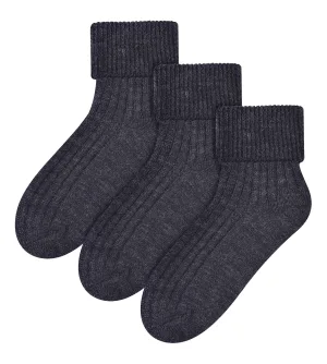 Steven – 3 Paar Dames Wol Bed Sokken | Luxe Lichtgewicht Warme Lounge Sokken – Houtskool