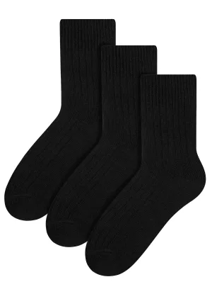 Steven – 3 Paar Multipack Dames Wol Gebreide Sokken | Warme Kousen Jurk Sokken – Zwart