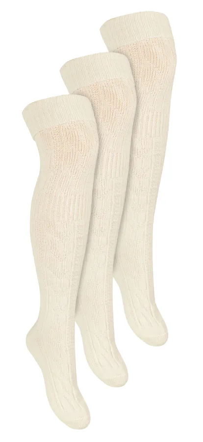 Steven – Dames 3 Paar Over Knie Wol Sokken | Multipack Vrouwen Lange Sokken – Beige