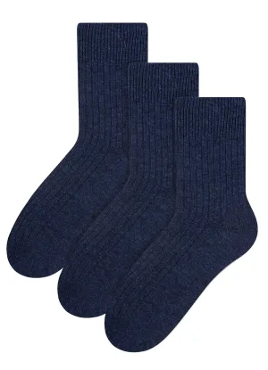 Steven – 3 Paar Dames Wol Bed Sokken | Luxe Lichtgewicht Warme Lounge Sokken – Marine