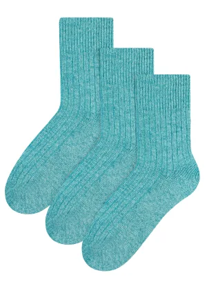 Steven – 3 Paar Multipack Dames Wol Gebreide Sokken | Warme Kousen Jurk Sokken – Turkoois