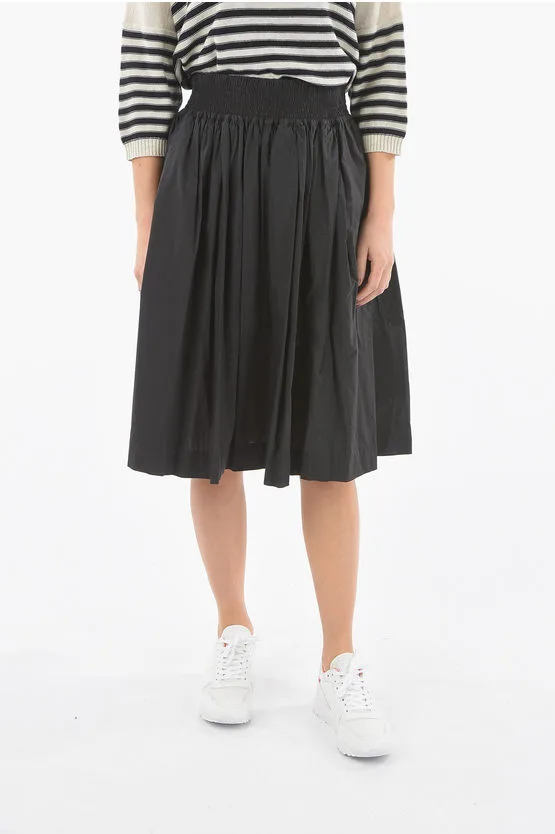 Popeline katoenen uitlopende rok met trekkoord in zwart