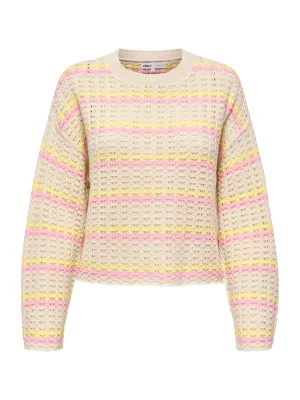 ONLY Trui ‘ONLASA’ beige / lichtgeel / rosa