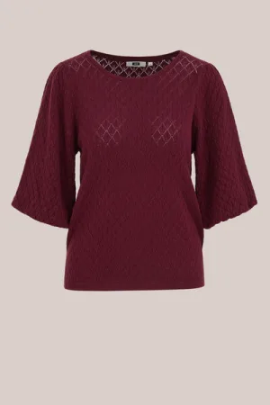 WE Fashion – Dames gebreide trui met structuur – Regular fit – Bordeauxrood – Livaeco™ Viscose –