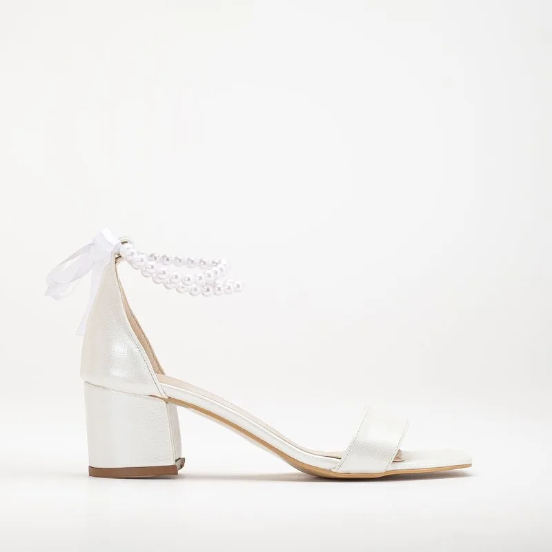 Illy Laag Block Hak Sandalen with Pearls