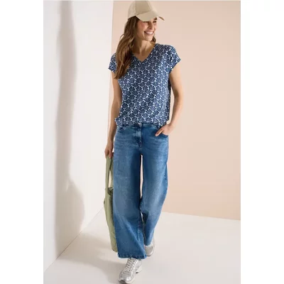 Cecil Dames Blouse met 3/4 mouwen en meerkleurige print in Blauw