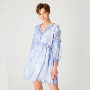 Korte trapeze chiffon jurk met abstracte print