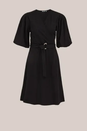 WE Fashion – Dames jersey jurk met ballonmouwen – Curve – Regular fit – Zwart – Viscose – Plus Size