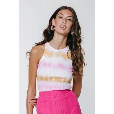 Colourful Rebel Sachi Tie Dye Rib Tanktop Bright Orange