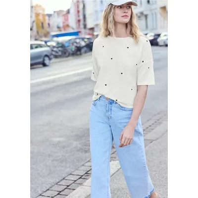 Street One Studio Dames Gedessineerd shirt met korte mouwen in Beige