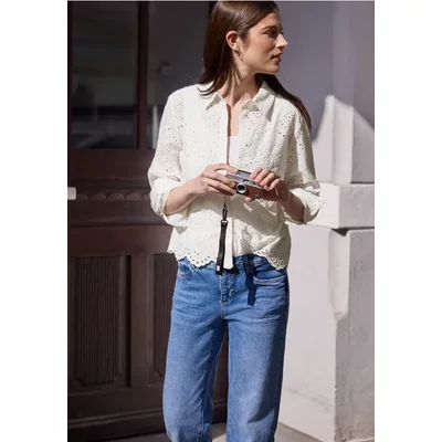 Street One Dames Materiaalmix chiffon shirt in Zwart