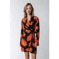 Colourful Rebel Dorin Painted Flower Mini Wrap Dress Mandarin Orange