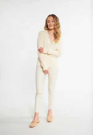 Crème Gestreepte Kabelgebreide Korte Cardigan