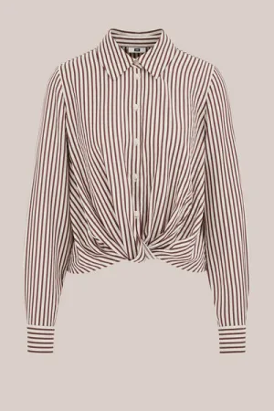 WE Fashion – Dames seersucker blouse met streep – Regular fit – Bordeauxrood – Viscose –