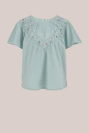 WE Fashion – Dames blouse met plooidetail – Regular fit – Groenblauw – Katoen –