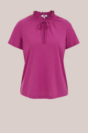 WE Fashion – Dames T-shirt met ruches – Regular fit – Fuchsia – LENZING™ ECOVERO™ viscose –