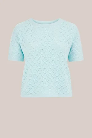 WE Fashion – Dames ajour trui – Curve – Regular fit – Lichtblauw – Biologisch katoen – Plus Size