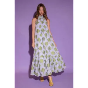 AMAYA Amsterdam A-lijn jurk met paisley print lichtblauw