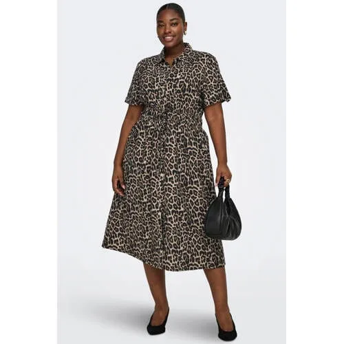 ONLY CARMAKOMA blousejurk met panterprint bruin