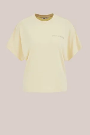 WE Fashion – Dames jersey T-shirt met embroidery – Regular fit – Lichtgeel – LENZING™ ECOVERO™ viscose –