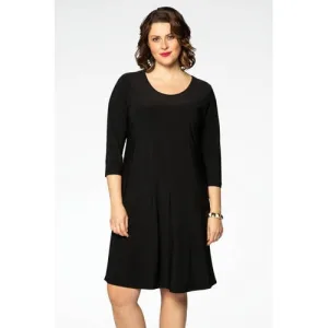 WE Fashion – Dames midi jurk met structuur – Curve – Regular fit – Zwart – Viscose – Plus Size