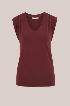 WE Fashion – Dames jersey singlet met plooidetail – Regular fit – Donkerrood – LENZING™ ECOVERO™ viscose –