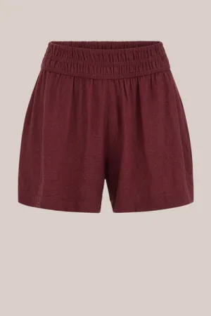 WE Fashion – Dames relaxed fit short met gesmokte tailleband – Relaxed Fit – Donkerrood – Viscose –