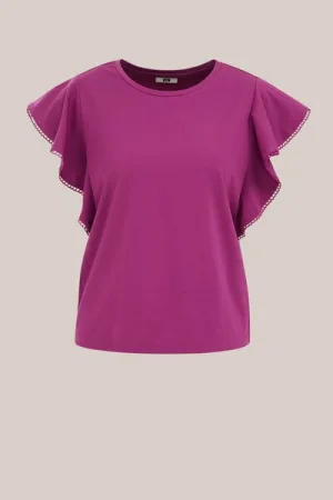WE Fashion – Dames jersey T-shirt met embroidery – Regular fit – Fuchsia – Viscose –