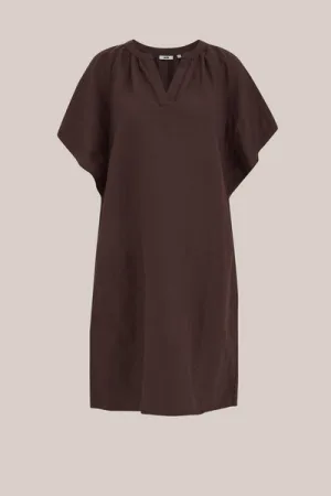 WE Fashion – Dames midi jurk van linnenmix – Regular fit – Donkerbruin – Livaeco™ Viscose –